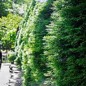 Also known as Western Red Cedar, is a conifer that looks similar to Green Leylandii and grows almost as fast. It has dark, olive-green leaves that can turn bronze in winter. The foliage has a pleasant, fruity fragrance when the leaves are crushed. These species can be cut back into old wood and will re-shoot.