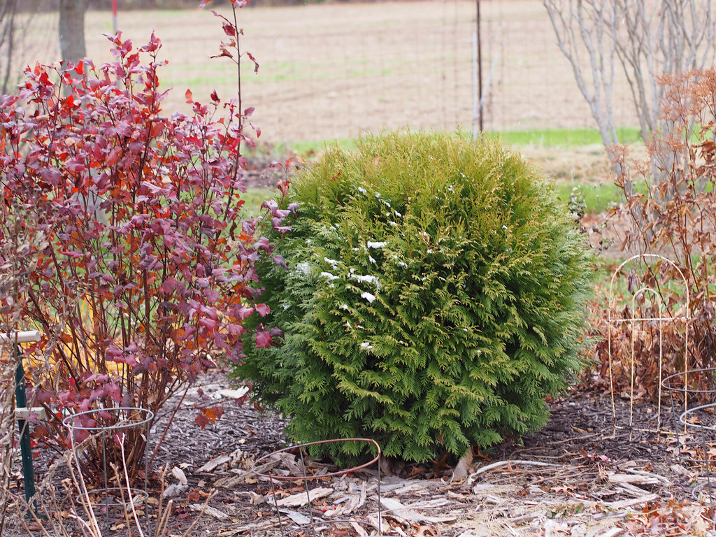 A slow-growing evergreen that is also drought and low humidity tolerant. The globose form of Thuja occidentalis 'Woodwardii' is retained as it matures even without pruning. Its dark-green foliage turns to bronze in winter.