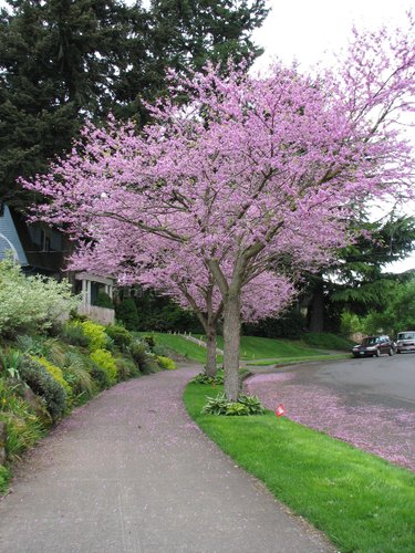 Very appealing pale rose, pea-shaped flowers, bloom in abundance in early spring on what appear to be lifeless twigs. Then the delightfully rounded, heart-shaped leaves cover this beautiful tree through the summer. Redbud has a yellow fall color and is shade tolerant. Commonly used for grafting rootstock due to its hardiness.